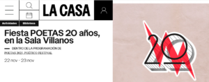 Fiesta POETAS 20 años, en la Sala Villanos